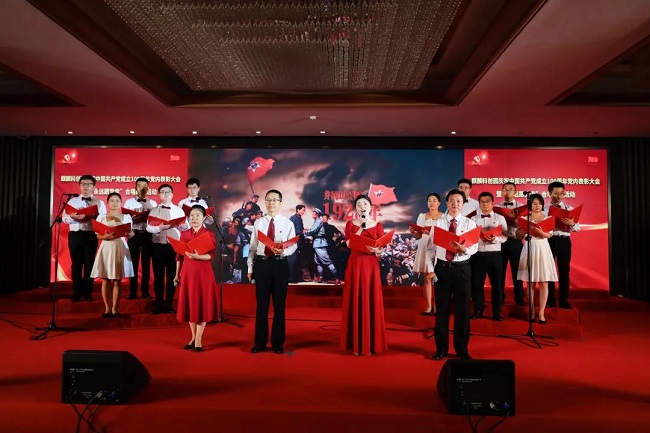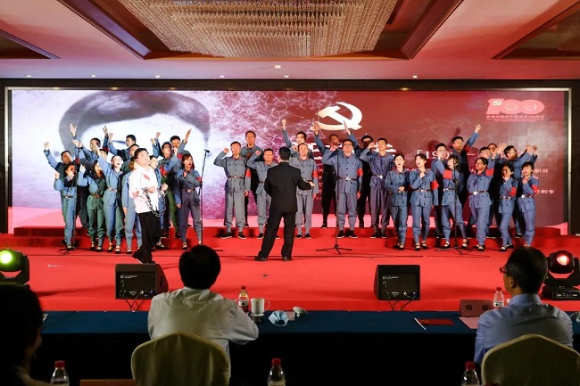合唱朗诵活动最后,全体人员集中观看了视频《中国共产党百年述职报告》。经过评选,机关第一、第二党支部,机关第三党支部,机关第六党支部和江苏启迪科技园发展有限公司党支部4支队伍最终荣获优秀组织奖。活动在全场人员共同挥舞着党旗、齐声合唱《没有共产党就没有新中国》中圆满结束。