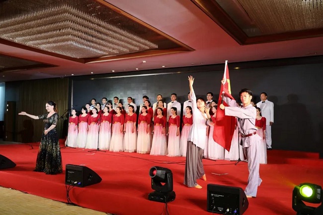 在“永远跟党走”合唱朗诵活动环节,园区各基层党组织坚持党建引领、通过党建带群团,机关及入园企业党支部共选送了8支队伍依次上台诵读红色经典,传唱红色歌曲,用自己的方式,为伟大的中国共产党百年华诞歌颂礼赞,引吭高歌,用真挚的声音回顾党的百年峥嵘岁月,颂扬党的百年光辉历程,讴歌党的百年辉煌成就。