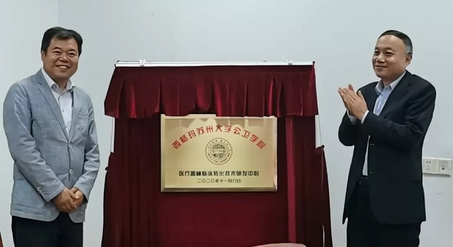 11月9日下午,园区企业南京西格玛医学技术股份有限公司(835754)与苏州大学公共卫生学院共建“医疗器械临床转化技术研发中心”挂牌签约仪式在苏州大学隆重举行。