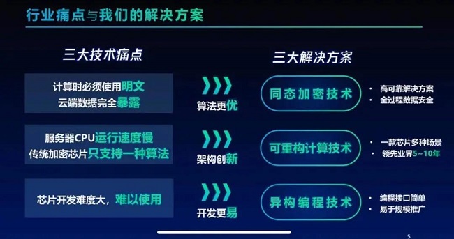 ☑本项目创业团队依托宁麒研究院院长李丽教授在可重构计算芯片领域多年专利论文等创新研究和扎实的芯片工程实现技能积累,致力于满足在物联网、人工智能及云计算等多种趋势共同推动下逐渐显现出的机构及个人隐私保护的重大需求。项目核心同态加密芯片支持乘法同态、加法同态等多种同态加密算法,配置时间小于50ns,能效相比IBM、星云等GPU实现提升近千倍。