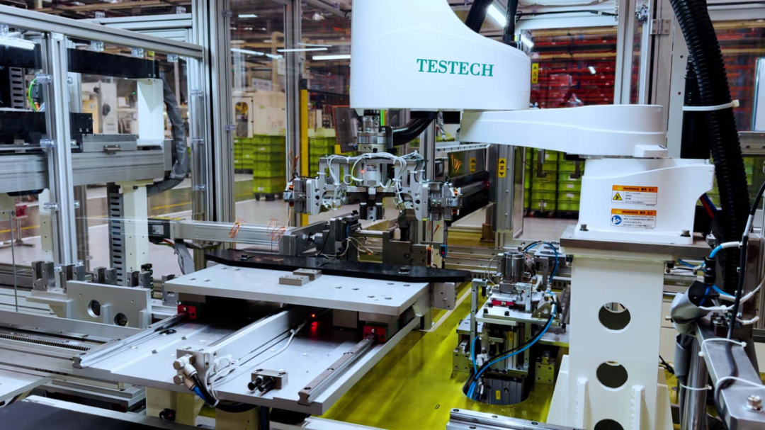 手指轻点屏幕,电机装备激光闪烁,双条测试线同时开展新能源汽车关键零部件电机的出厂测试:只见6组智能抓夹夹住电机,仅需40秒便完成1台电机的测试,测试准确率高达99.8%……