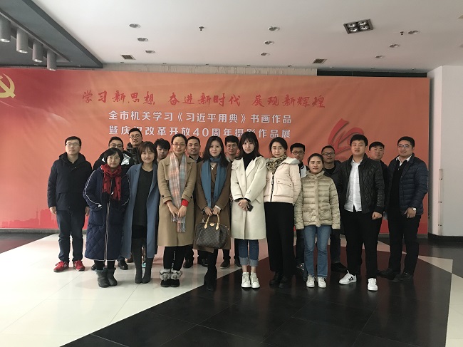 12月21日上午,麒麟高新区组织20多名党员干部到南京市美术馆,参观了“学习新思想 奋进新时代 展现新辉煌”——全市机关学习《习近平用典》书画作品暨庆祝改革开放40周年摄影作品展。