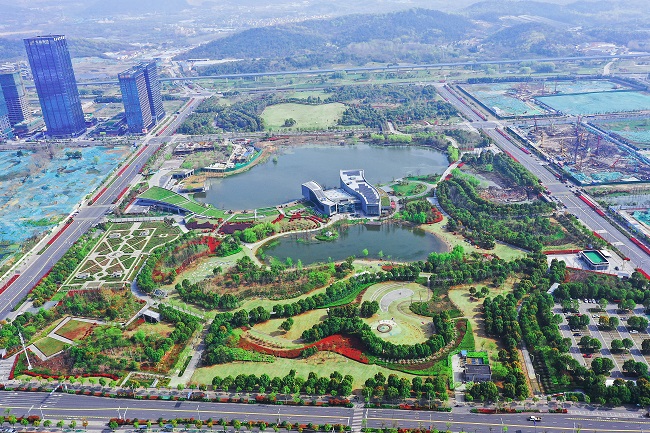 麒麟生态公园位于麒麟科创园中部的核心区内,紫金山与青龙山之间的生态廊道之上,打造人与自然和谐共生、富有地方特色的中央活力地带。现阶段,麒麟生态公园作为南京东部地区的核心景观及绿轴,已成为南京东部中心区的城市“绿肺”,有效改善了城市生态环境,提升了宜居水平。公园种植各类苗木及名贵树木150余种,四季常绿、三季有花。