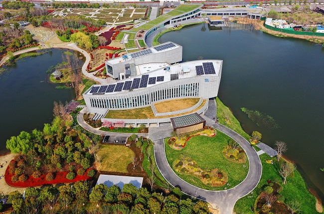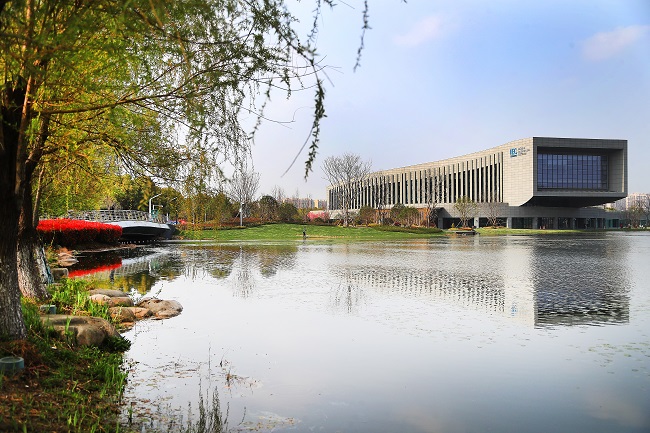 两个湖泊是位于麒麟生态公园一期的生态湖,约8万平方米。两湖环抱着刚落成的IEC国际标准促进中心(南京),绿树掩映,碧波荡漾。