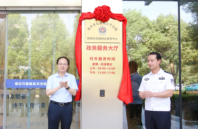 金秋九月,丹桂飘香,初秋白露时节,麒麟科创园举行了政务服务中心公安综合服务中心揭牌活动。麒麟科创园管委会党组副书记、主任樊向前,江宁区副区长、公安分局局长李鹏共同为中心揭牌,省公安厅、市公安局行政审批服务处,区公安分局以及区行政审批局相关负责同志、麒麟街道主要负责同志参加了活动,活动由管委会副主任韦斌主持。揭牌后,大家还共同参观了综合服务大厅以及警网融合中心。