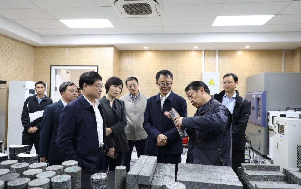 徐文强一行参观了南京现代综合交通实验室的新材料研发大楼,听取了实验室建设情况汇报,并详细了解了实验室在高性能环氧沥青方面的研究突破、实际应用等情况。徐文强充分肯定了实验室目前的发展成果,他表示,希望实验室进一步发挥行业重点实验室平台优势,瞄准科技前沿,面向实际需求,推动研究成果转化应用及产业化发展,努力成为发展新质生产力的重要阵地,为综合交通高质量发展提供支撑。王海怀表示,一直以来中交集团紧密围绕国家重大战略需求, 聚焦重大工程建设,不断实现关键核心技术创新突破。作为实验室共建单位之一,中交集团也将持续赋能,加强项目协同合作,加快综合交通产业园建设推进。希望实验室坚持创新驱动引领,强化应用场景牵引,为交通强国建设贡献更大力量。