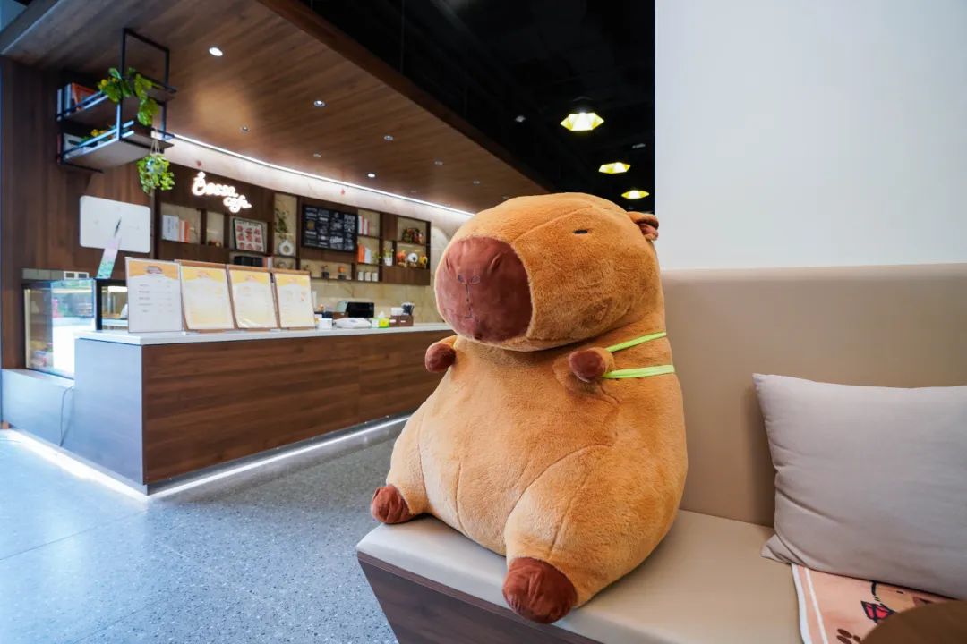 走出交通实验室,沿着东麒路一路向东北前行,远远可看到麒麟人工智能产业园的连片楼宇。园区很安静,恰如科研成果总是在沉静中迸发力量;而在企业共享会议中心门前,超大咖啡杯里的“卡皮巴拉”和“鹦鹉”公仔,用鲜亮的色彩提醒着人们这里有一间Bossa Cafe。在这里,咖啡的香气与智慧的火花一同飞扬,也是麒麟科研人最爱去的地方。