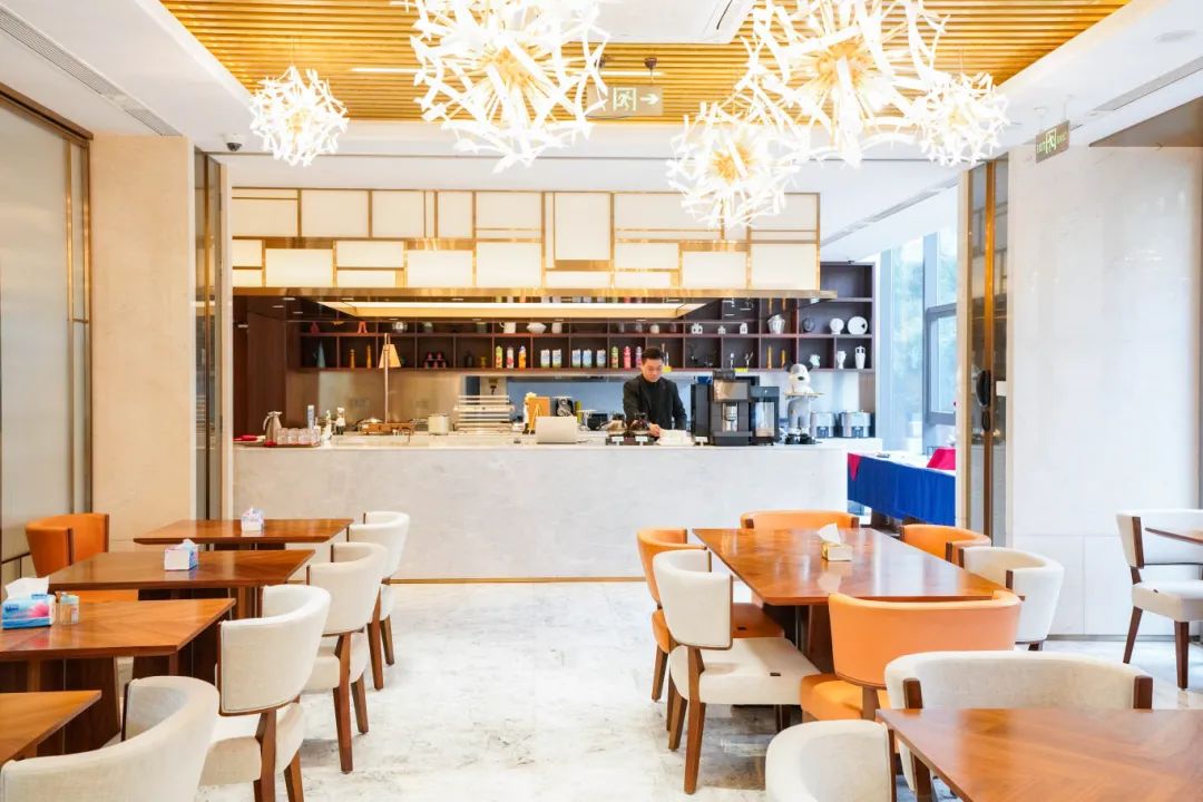 如果觉得这条Citywalk路线有点长,不妨到人工智能产业园旁边的麒麟金帆万源酒店稍作休息。新中式风格的大厅典雅舒适,这里不仅是休憩的港湾,更是科研交流的平台。酒店一楼的餐厅,除了承办宴席活动,也有精致实惠的早中晚工作套餐,为园区的科研人员提供了轻松享受美食的好去处。