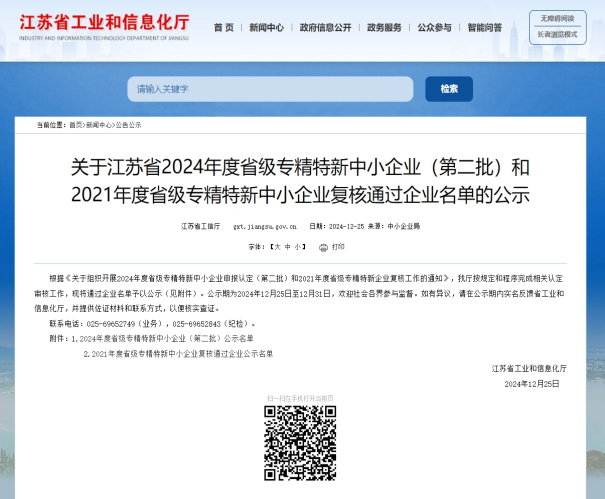 近日,江苏省工信厅公示了全省2024年度省级专精特新中小企业(第二批)和2021年度省级专精特新中小企业复核通过企业名单。其中,麒麟科创园3家企业新认定为省级“专精特新”企业。今年园区共计12家企业获得专精特新中小企业认定,1家企业获得国家专精特新“小巨人”企业认定。