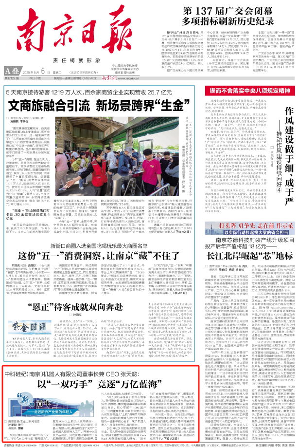 从机器人核心部件“能用”工具到“会用”工具,中科硅纪(南京)机器人有限公司目前已实现从实验室到产业化的关键跨越,正加速竞逐“万亿蓝海”。今年,张天懿的工作重心将更多放在研发管理和公司运营上,并定下目标,将打造一套更完整且成熟的Casia Hand商业化产品。“我们对企业和产业前景有充分的信心,现在正结合细分场景开展整机迭代和落地,深化全链条技术优势和应用落地能力,实现在工业、服务和特种场景的广泛应用。同时,打造品牌影响力,积极探索国际市场,为助力南京打造具有全球影响力的产业科技创新中心主承载区贡献力量。”张天懿说。